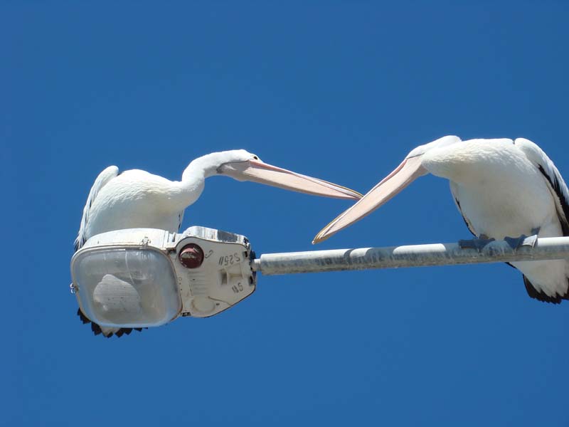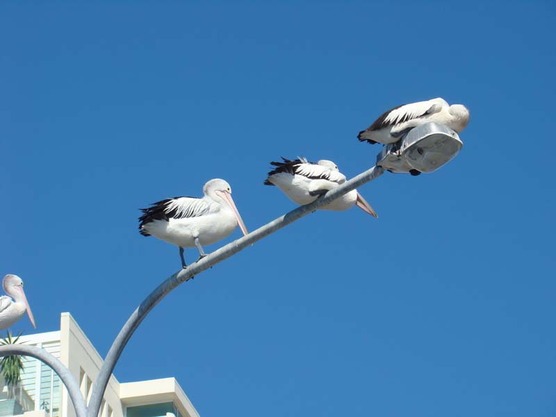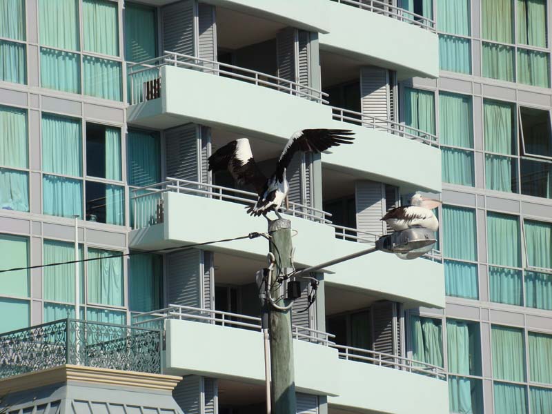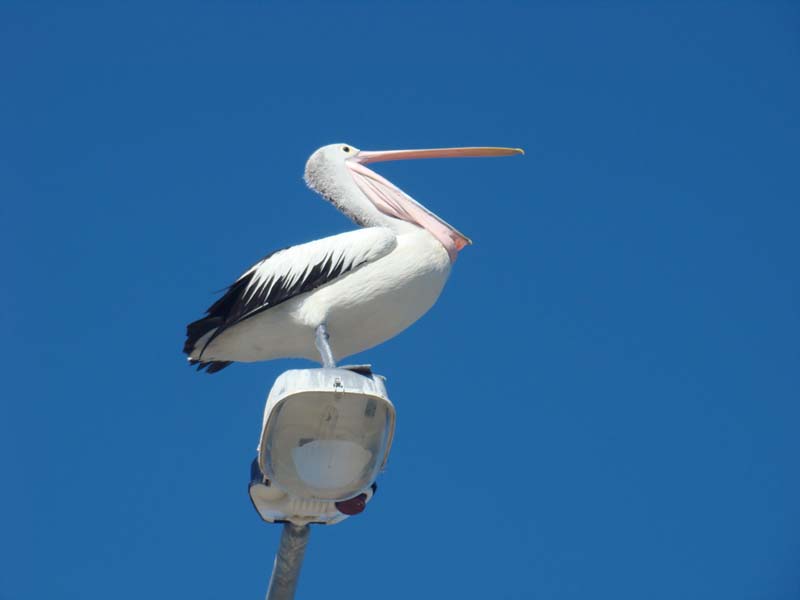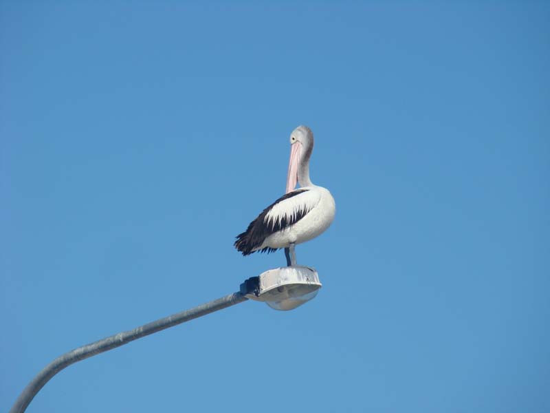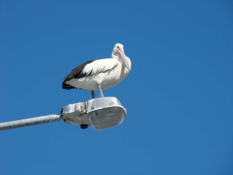 Landing on a lamp post.