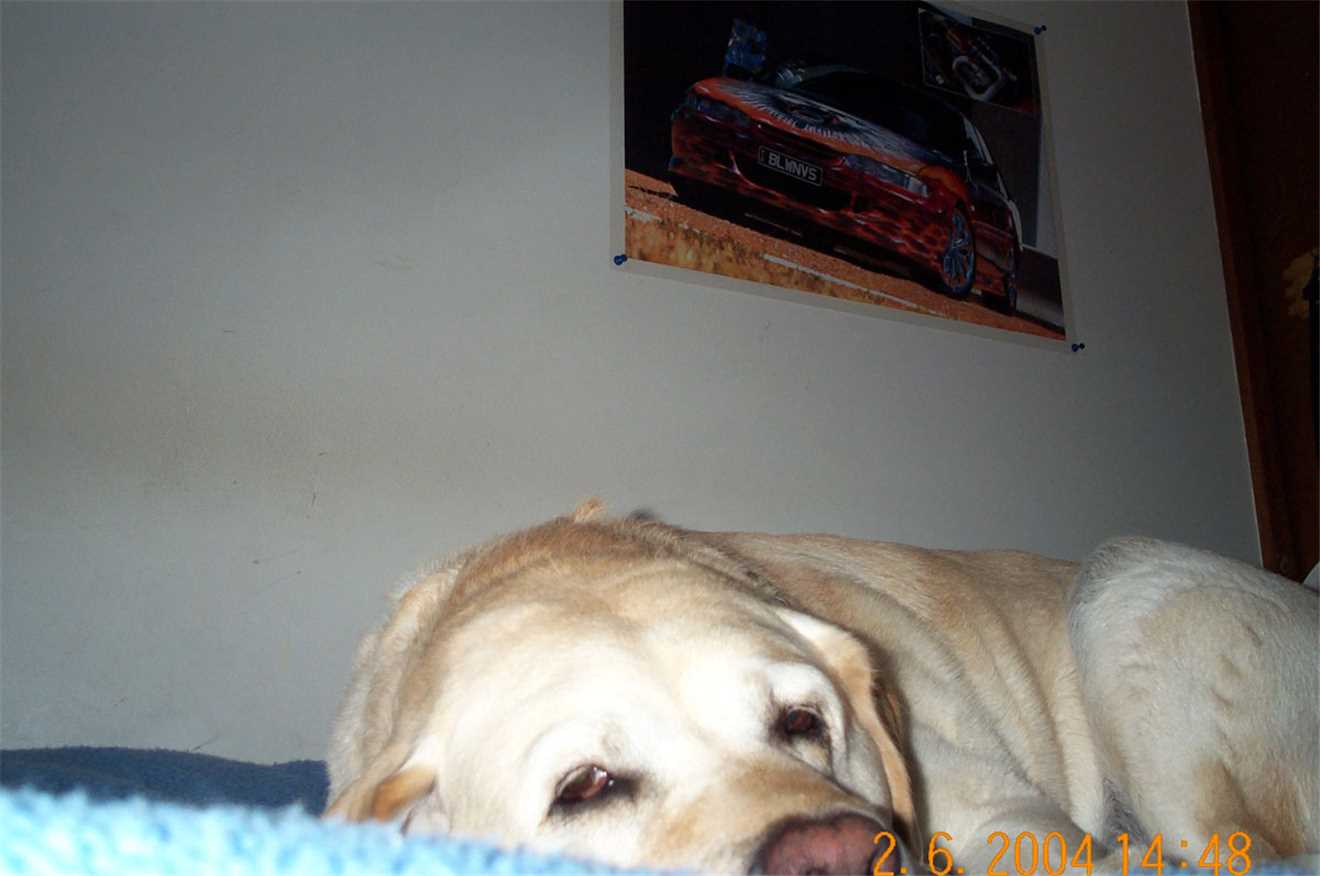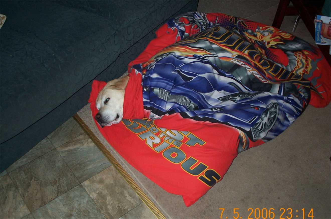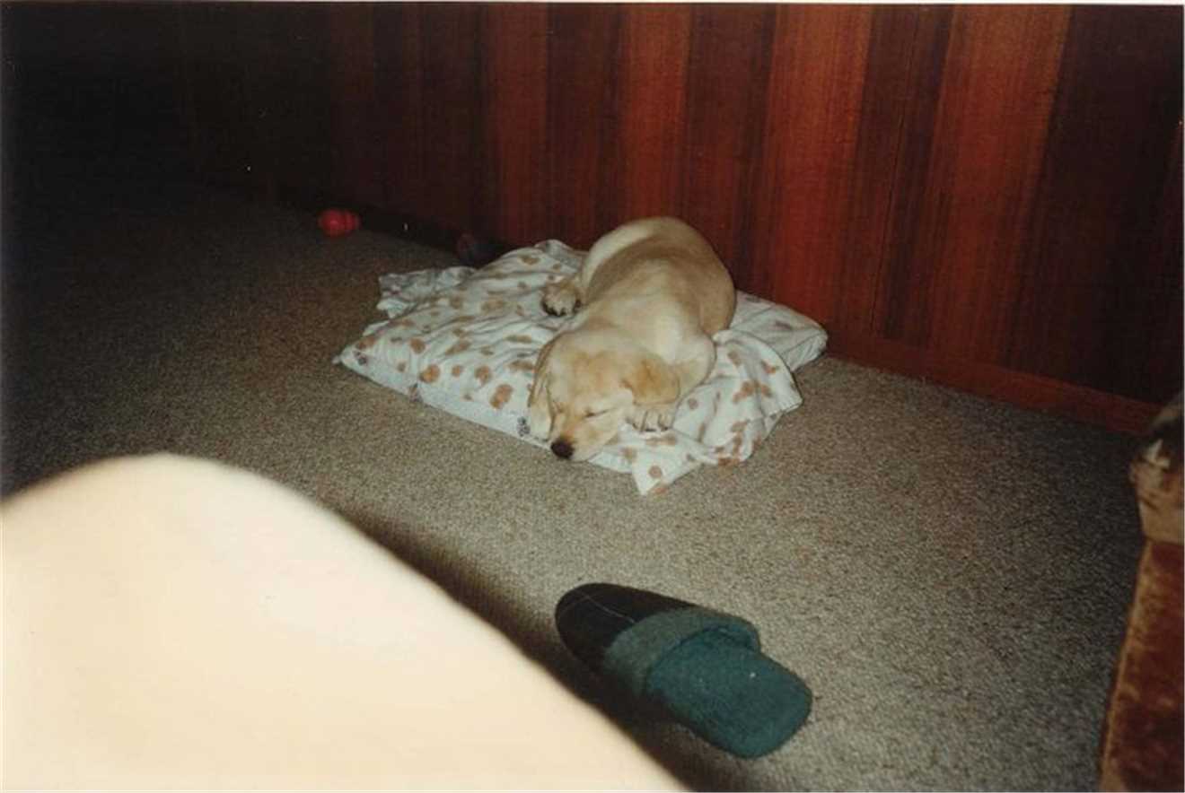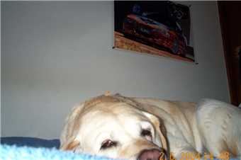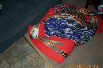 2006 - Gees, I can't sleep in my kennel without having a photo taken.