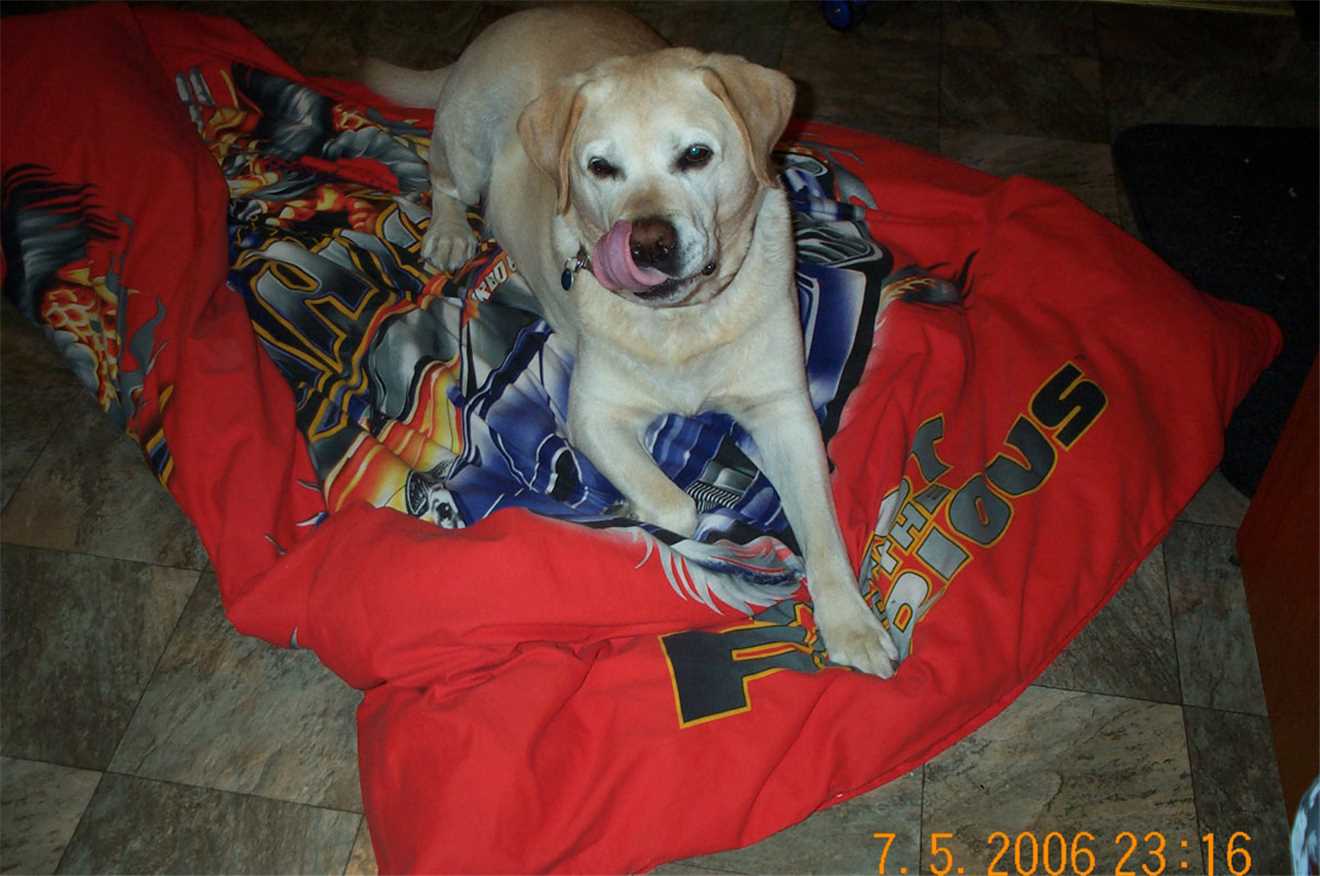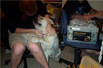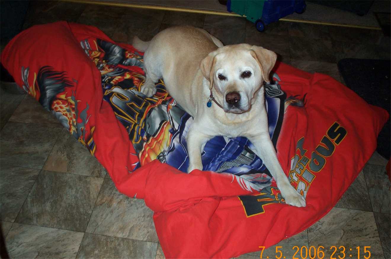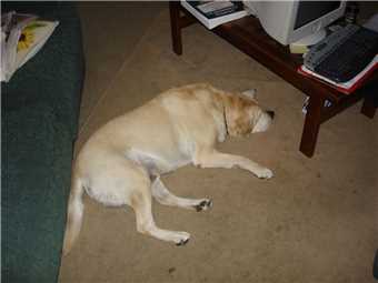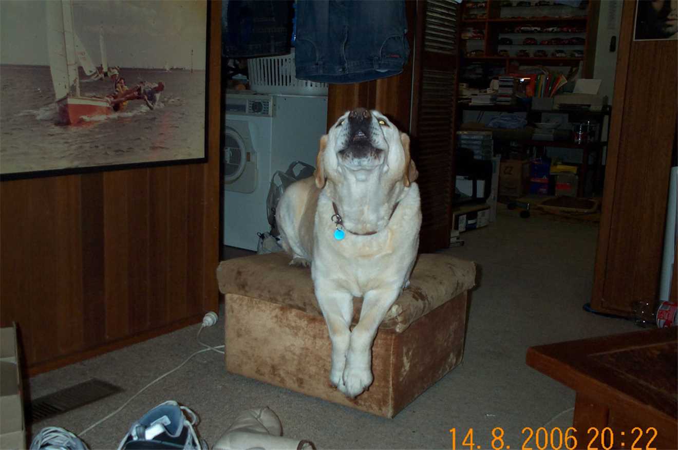 2006 - Gees, I can't sleep in my kennel without having a photo taken.
