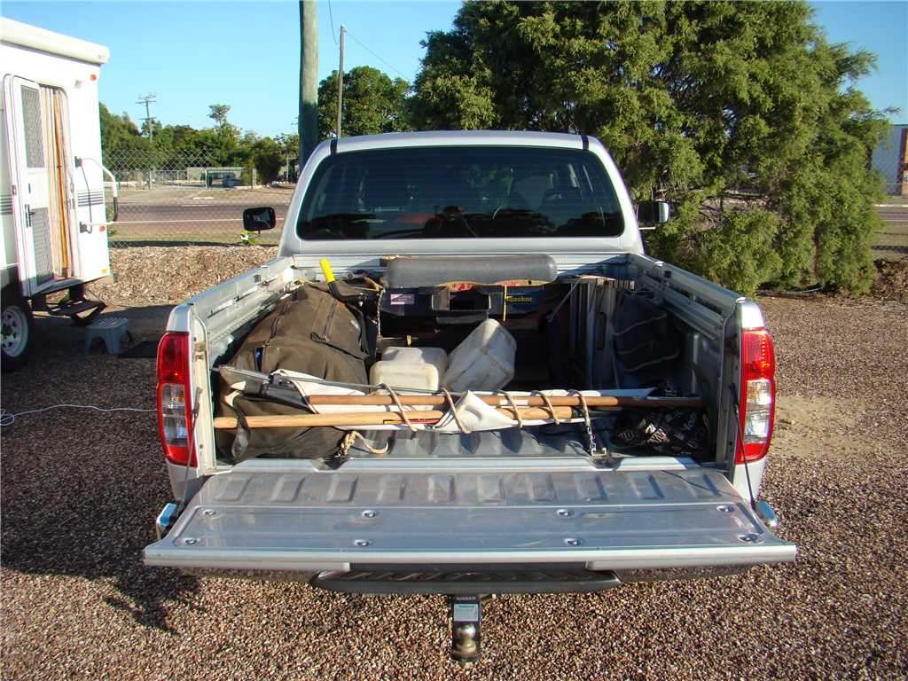 - At the front is my shovel and tonneau for the ute. It is tied to the tray, because my original tonneau blow out while driving.
