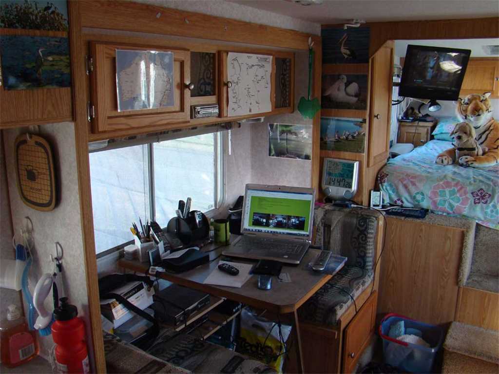 - 15" TV, analogue, Digital, DVD combo, which also displays Satellite TV and a direct feed from my laptop.