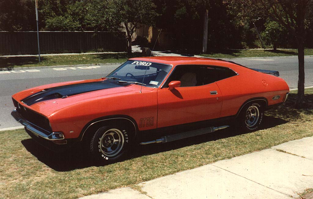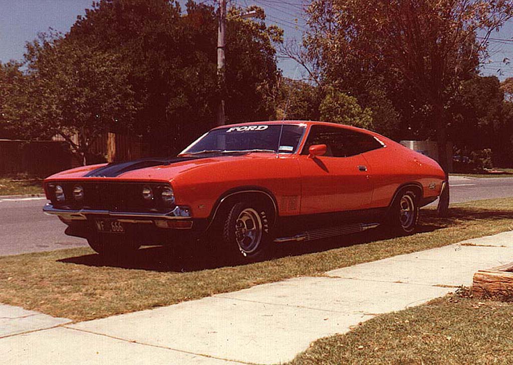 I ordered my Ford from Melford Motors, top end of Elizabeth St, Melbourne in July 1974. Melford ordered it with front and rear spoilers, but without badges, as Melford put the GT badge and stickers on it to make it look like a GT replica. It had 8" Aunger mags and tyres were Big Boss Fifty front and Mickey Thompson Indy Profile 50 (H50x14) on the rear. Being an XB Hardtop, you had to fill up the rear mudguard with tyres. I couldn't fit N50x14 Mickeys under the rear guards without some mods, so I went with H50x14.