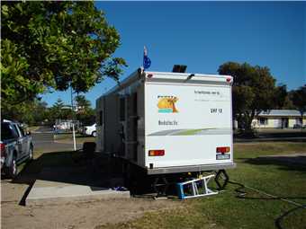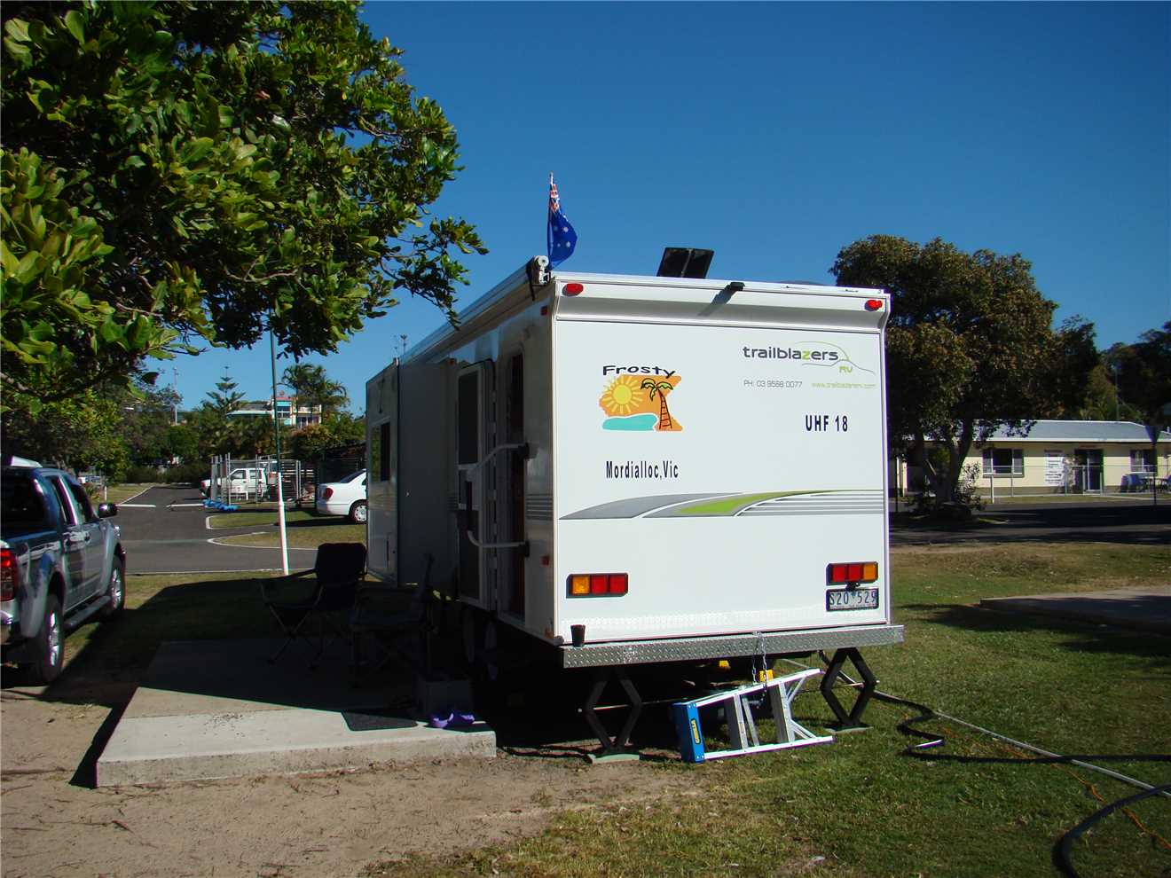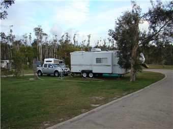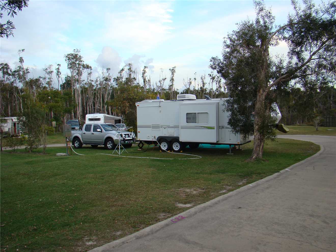 An easy 150kms to Tin Can Bay. Another uneventful drive and I like uneventful drives. Stopped for a break at Matilda Service centre, only a few kms south of Gympie. Around noon, got to Tin Can Bay Tourist Park and setup camp. No dramas. Laid out the new green matting on the grass. It feels soft to walk on. I gave the Office a $20 deposit for their TV cable. Now we have good quality TV, so Marg is happy. She can watch Big Brother clearly. Our Sat Tv is digital quality, but Imparja decided to drop channel 10, so we are without ch 10 and not very happy about it.