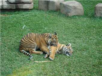 Next attraction was a highlight of the zoo, watching the tiger cubs playing. The shuttle bus was there, so we took it back to the main entry.