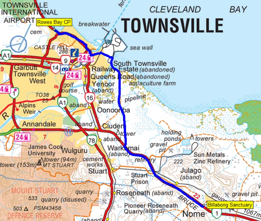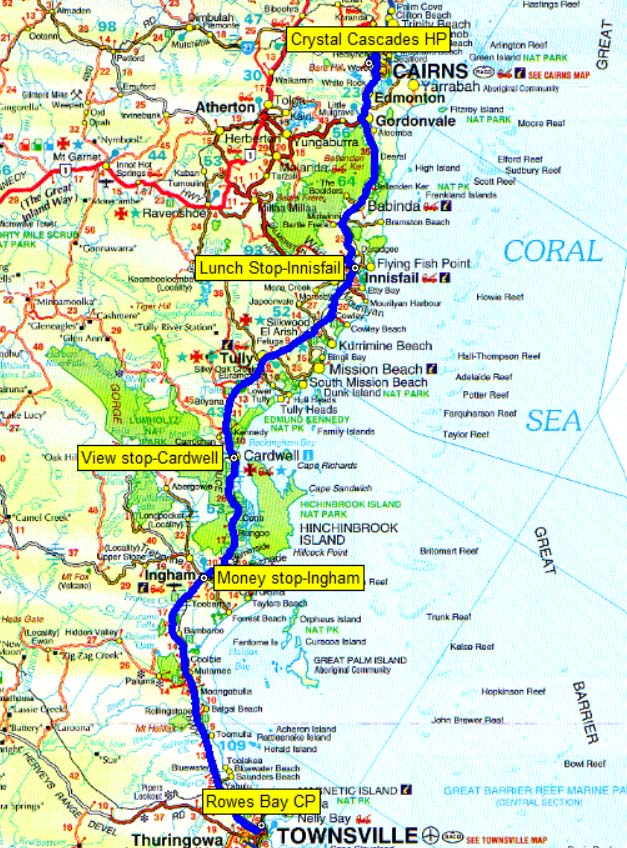 Our route from Townsville to Cairns.