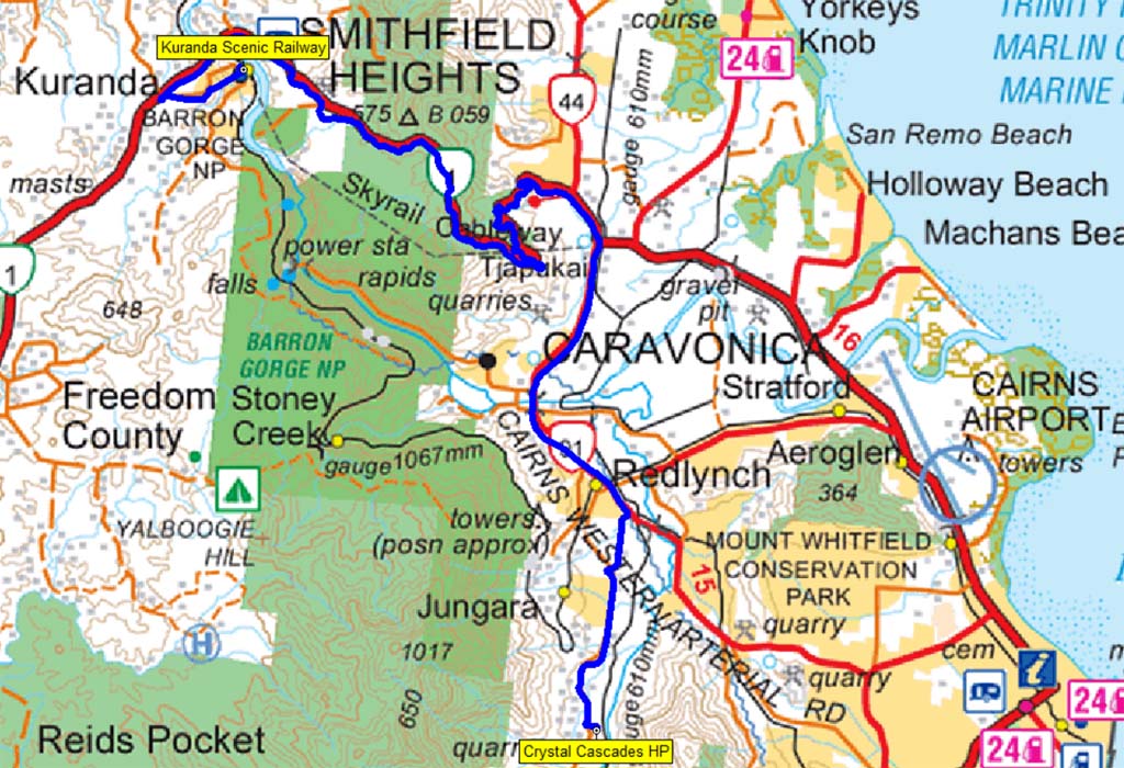 Left camp about 9:15am for our 254kms jaunt to Crystal Cascades CP at Cairns - well Redlynch.