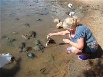 Marg feeding the Turtles.