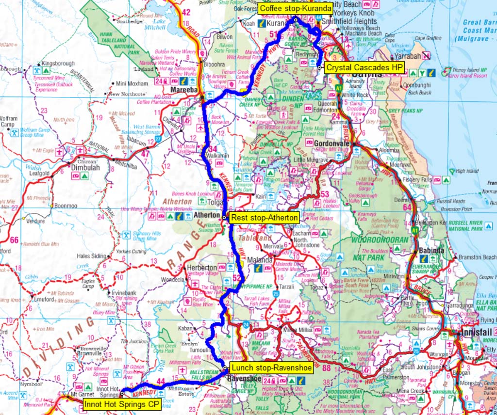 Our route from Cairns to Innot Hot Springs.