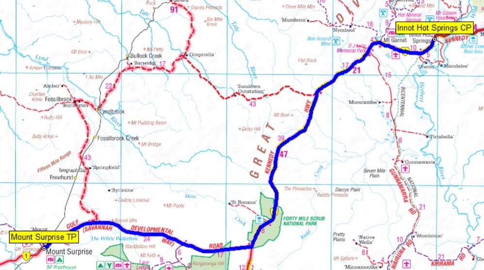Our route from Innot Hot Springs to Mount Surprise.
