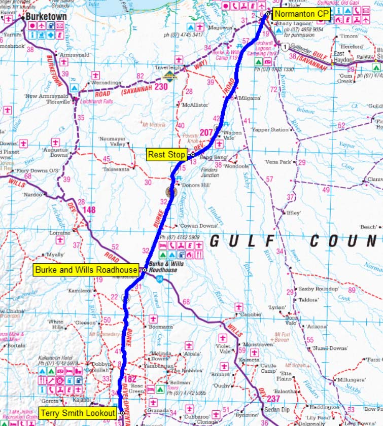 Our route from Normanton to Terry Smith Lookout.