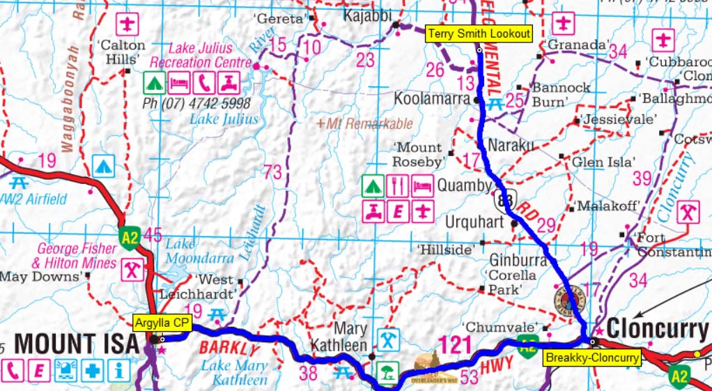 Our route from Terry Smith Lookout to Mount Isa.
