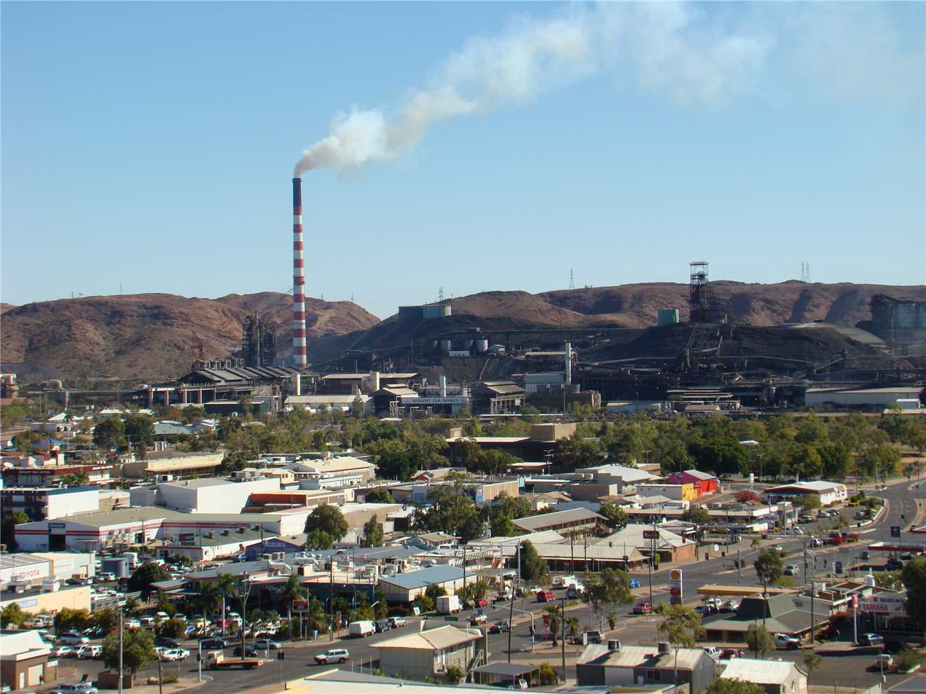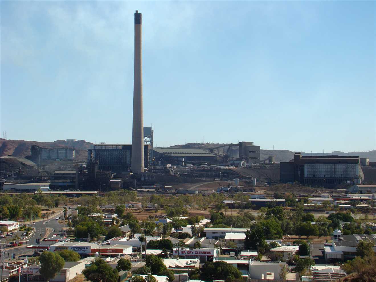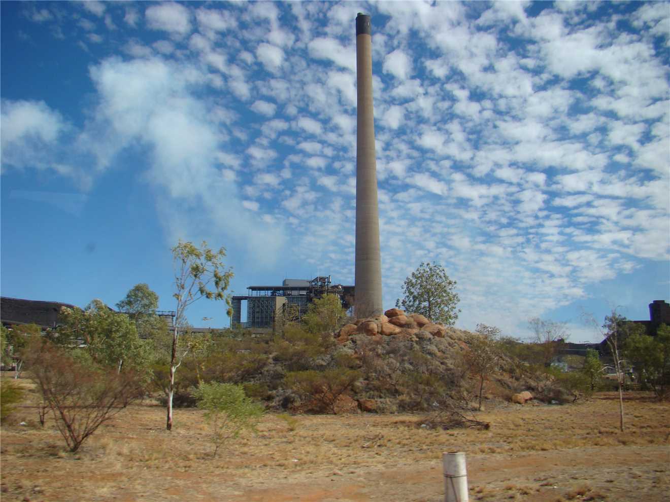 As you approach Mount Isa from the Cloncurry direction, your first sight of Mount Isa is the 2 large chimmney stacks,