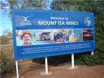 Mount Isa Mines sign at the Southern entrance.
