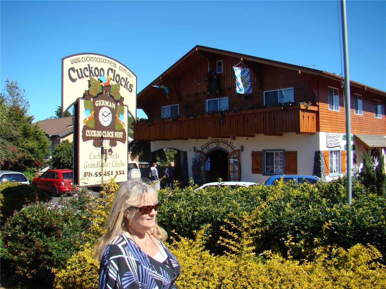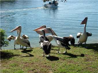 (pelicans) we are sick people. There were 2 Fudge shops, $20 later we had a bag full of fudge, consequently, last night I felt sick after pigging out on the fudge. (Why am I not losing any weight, stuffed if I know). Another interesting house specialised in German made Cuckoo clocks, we went in there for a look, they had all sorts of clocks ranging from absolutely magnificent Grandfather clocks costing $16,000 down to $50 clocks. It had several hundred clocks on display. You guessed it we left the shop with a Cuckoo clock that cuckoos on the hour and has a light sensor that stops the monster from cuckooing during the night. It is going to hang in the van, can you imagine what people will think when they hear a cuckoo clock cuckooing every hour in a Caravan park.