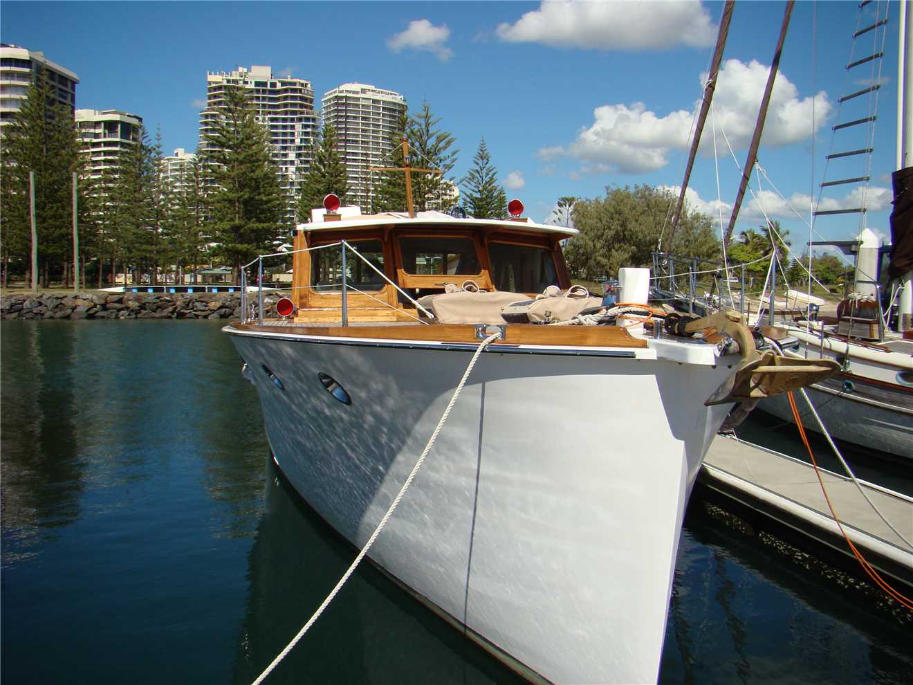 I rang Dorro this morning and went around to the Southport Yacht Club and had a coffee and a catch up, after all, we had not seen each other for 27 years. He has been living on a 50ft 1940 motor launch, he restored it over the past 5 years and it is absolutely beautiful.