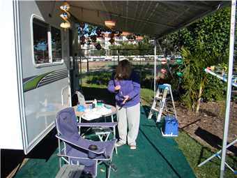 Back at camp, the knives have arrived and Marg is on the internet sorting out the altimeter stuff up. All sorted, so we went to the Office and informed them that Marg is actually staying with me and that we are expecting a parcel again and don't bloody well return it.