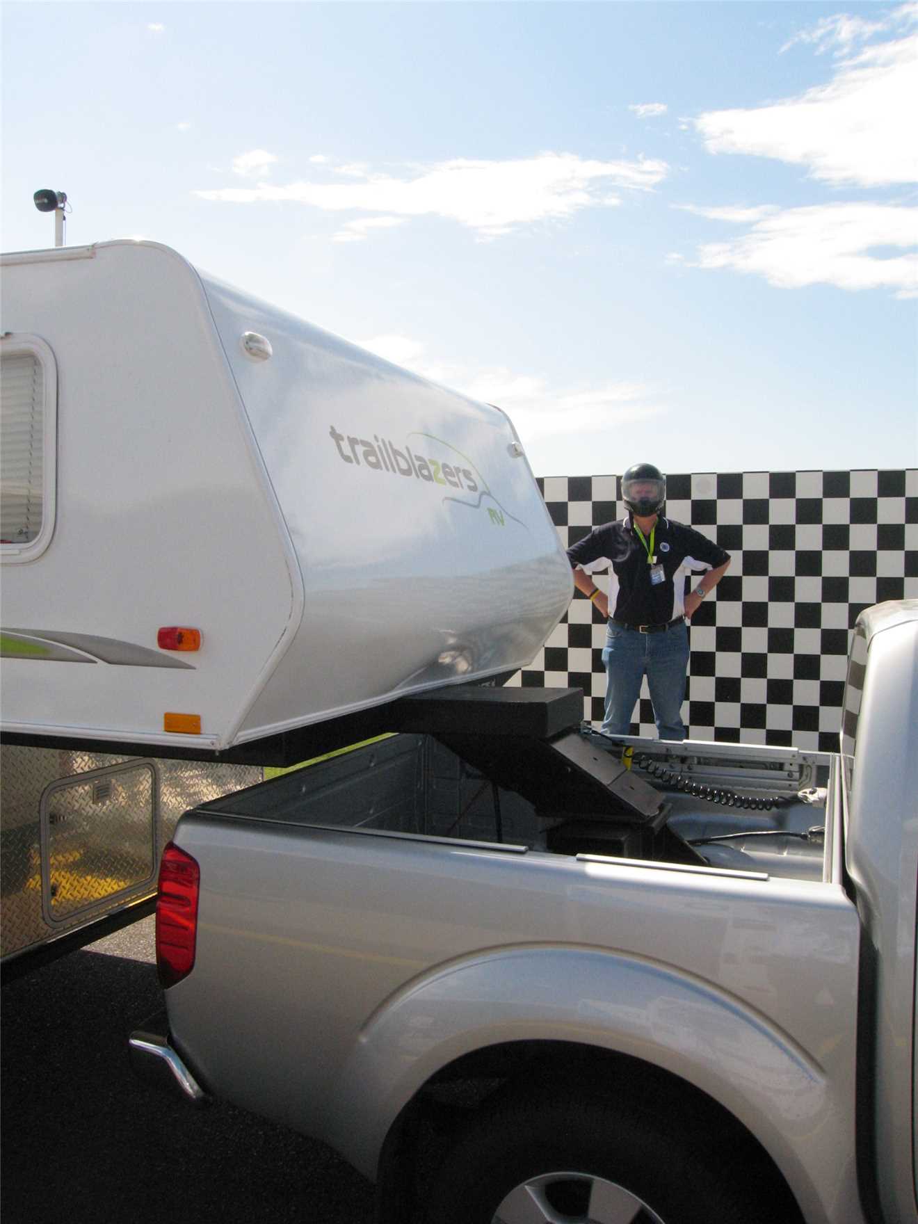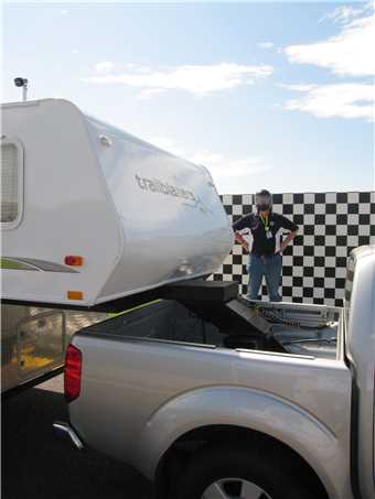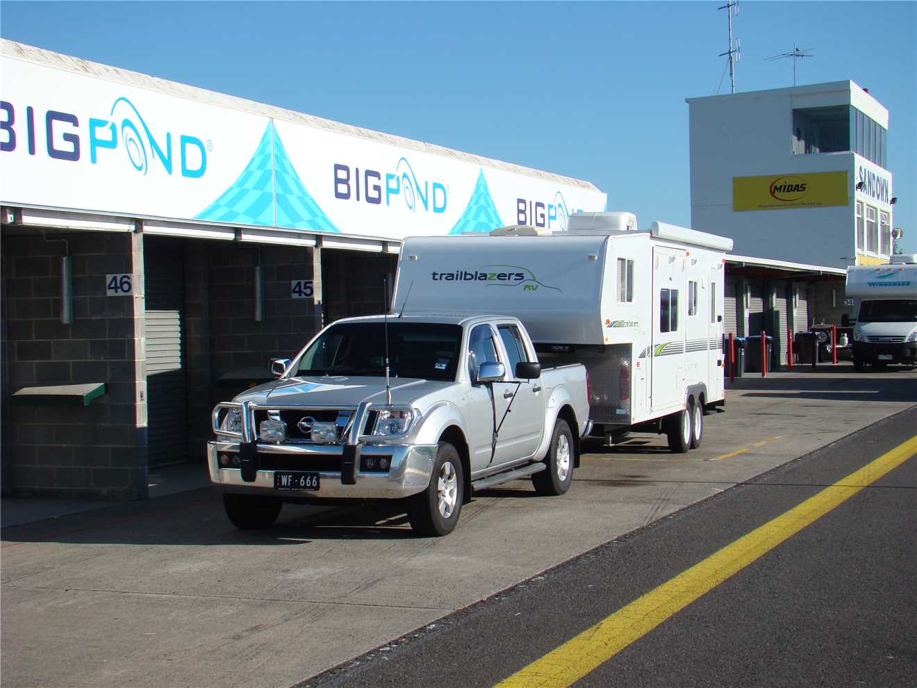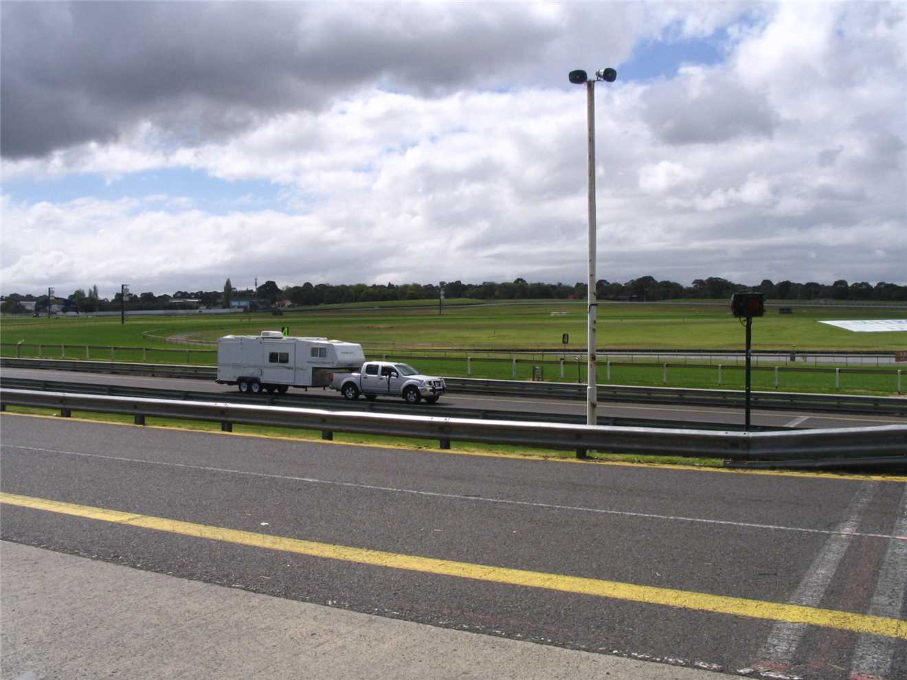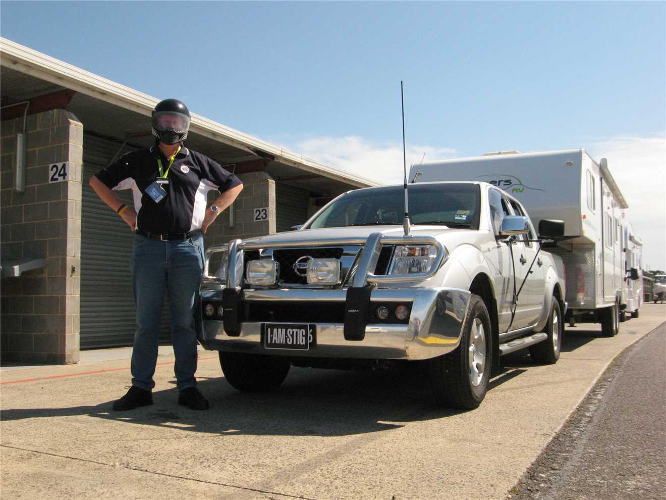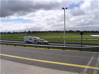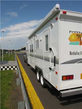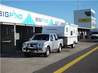 Thursday morning at 8am I arrived at the track, showed my exhibitor's pass to the security guard and I was allowed to drive into the back of the pit area. Parked my tug at the back of the pits and walked up to the front of the pits to speak to whoever was running the show. The 'testing of caravans, motorhomes and 5th Wheelers' section of the show was run by the Tow-ed company (www.tow-ed.com.au).