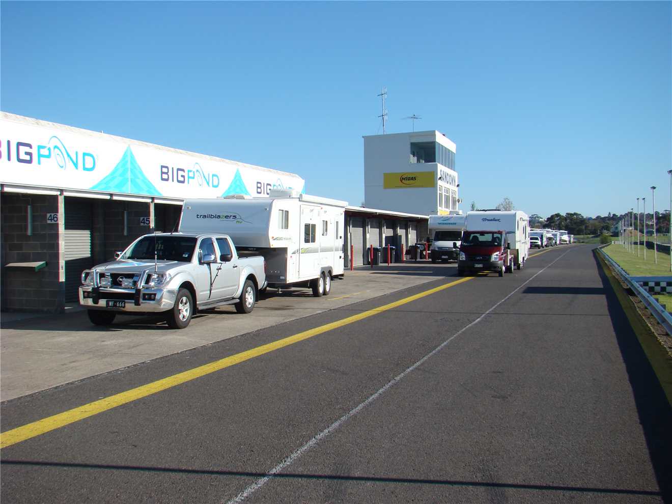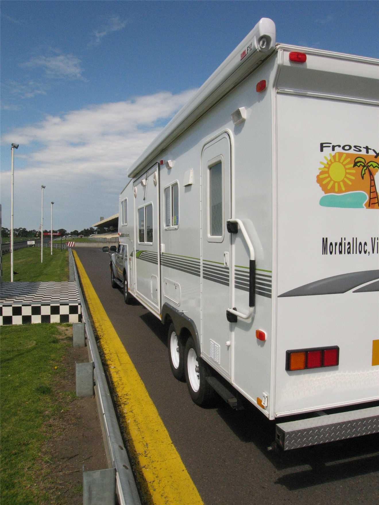 Mid September, Phil from Trailblazers RV rang me and asked if I wanted to take our rig to Sandown and do laps of the motor racing circuit, taking prospective customers with me. Being a petrolhead from way back, I immediately agreed. When would I ever get another chance for 'Joe Public' to drive around the Sandown racetrack, probably never.