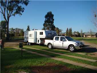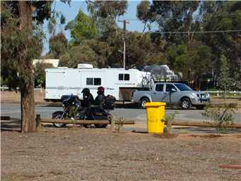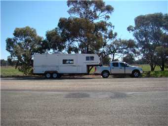 During the day, Leighton told us that another 5th Wheeler was expected for the night. While Pat and I were relaxing with a chilled refresher, Ken and Jan arrived with brand new 5th Wheeler, that Ken has designed and had built. What a bloody ripper.