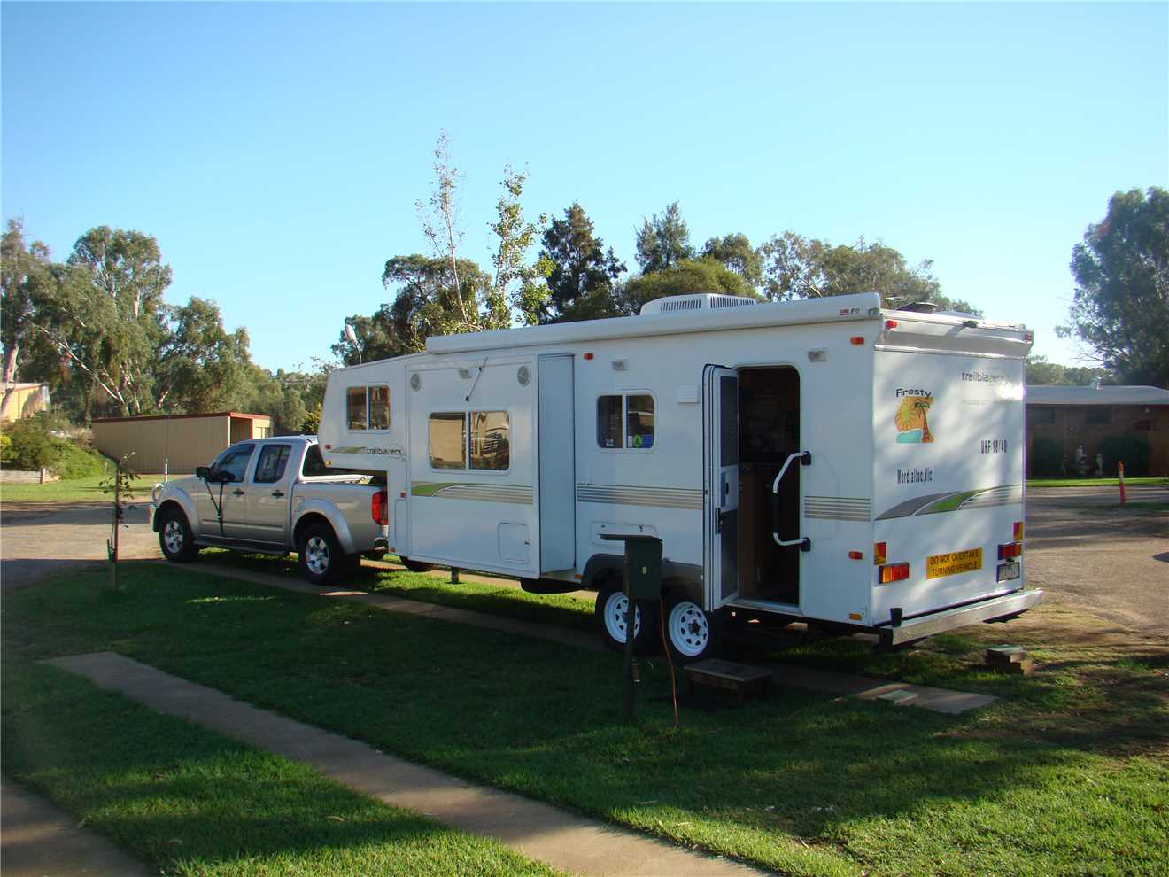 Our lunch stop was a rest stop about 20kms before Shepparton. We boiled the kettle to make coffee and made sandwiches and sat in the van to eat. Our first diesel stop was at Jerilderie. Between Jerilderie and Narrandera, I sat behind a Sundance 5th Wheeler, we both sat on about 95kph. I sent Narrandera CP an email this morning, saying we would be arriving about 4:30pm, in reality, we pulled into the park at 4:40pm, close. We had a drive through, it is a small park, but very neat and tidy, the amenities were spotlessly clean. There were about 5 other vans here.