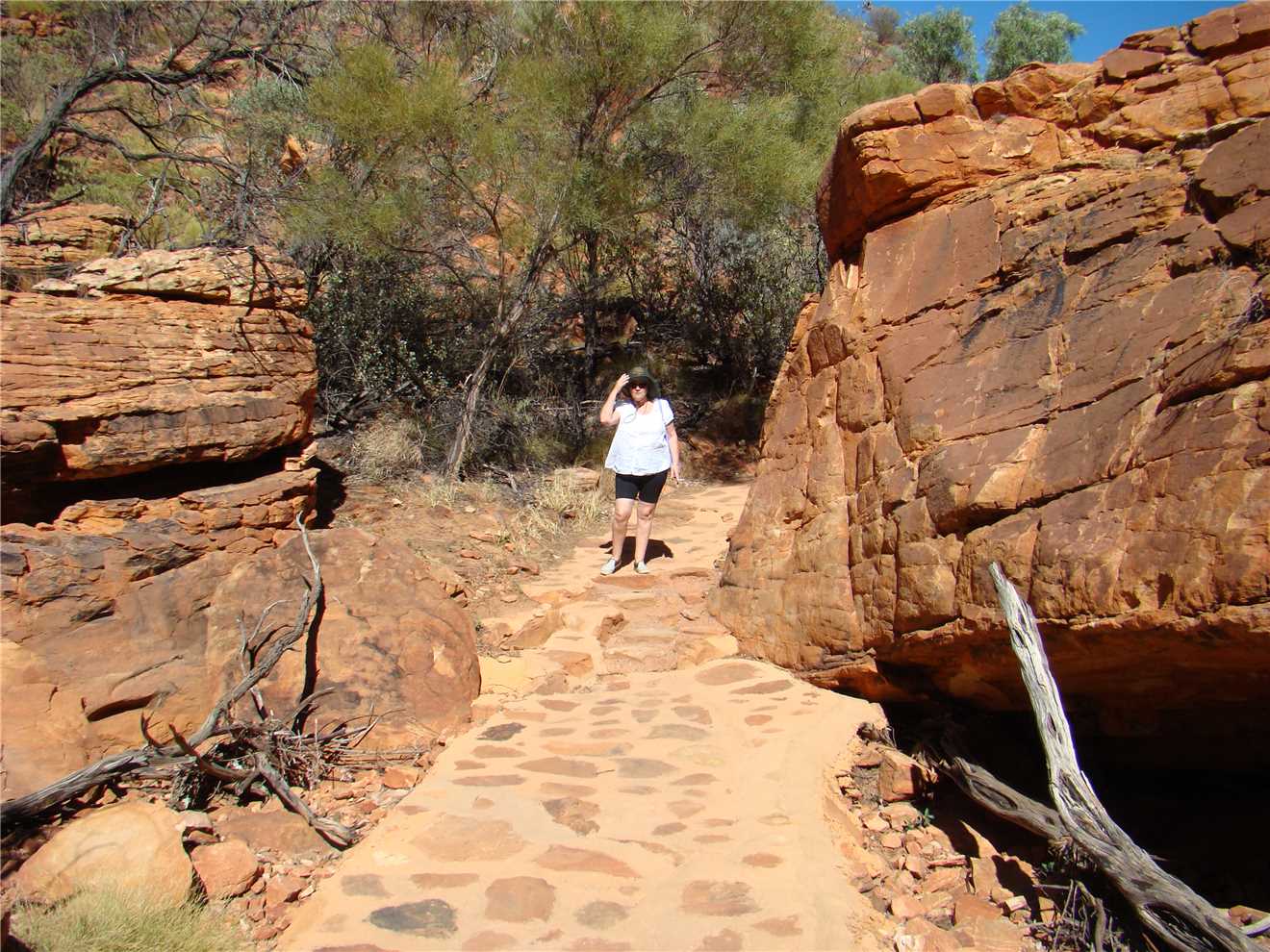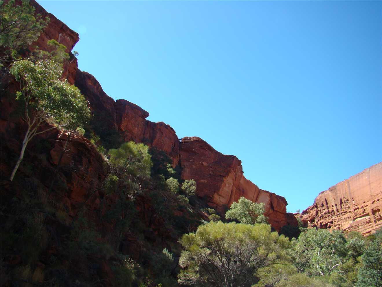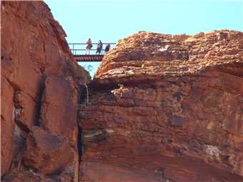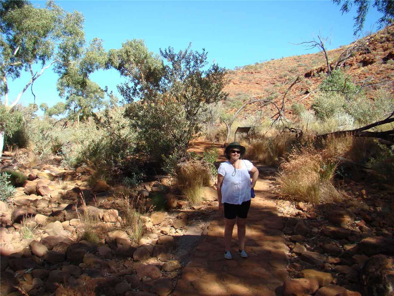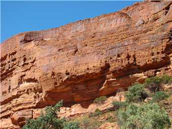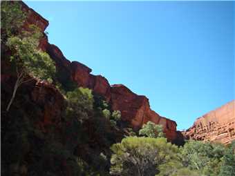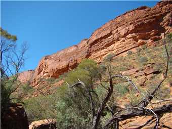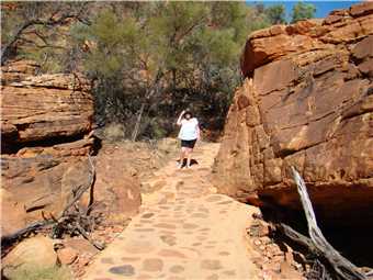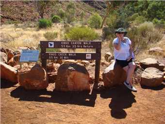 We went to Kings Canyon this morning and took the creek walk. Looking up at the rock walls was awesome. I think that the rim walk would have killed us. Back at camp we did some shopping, not much, because it is expensive, eg. Kirks 1.25litre software was $4.60. I spent most of the afternoon on my laptop, resizing the photos, ready to upload to the internet tomorrow, when we arrive at Ayres Rock.