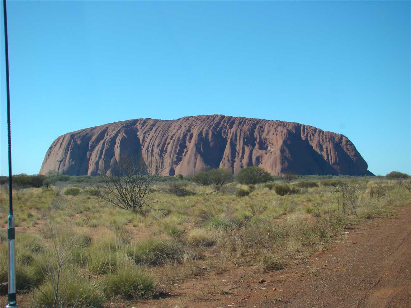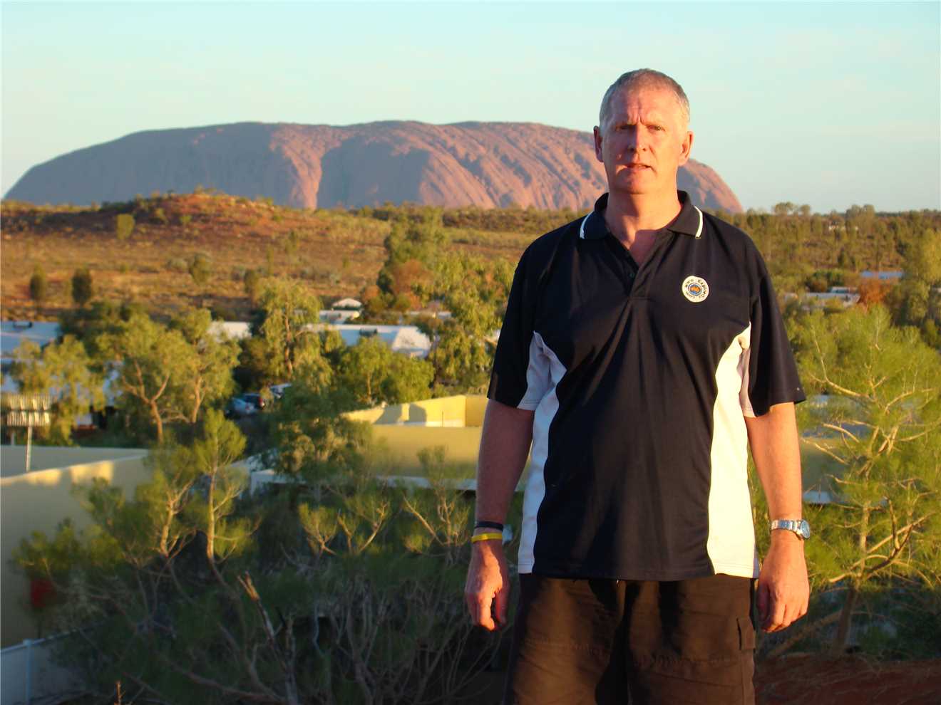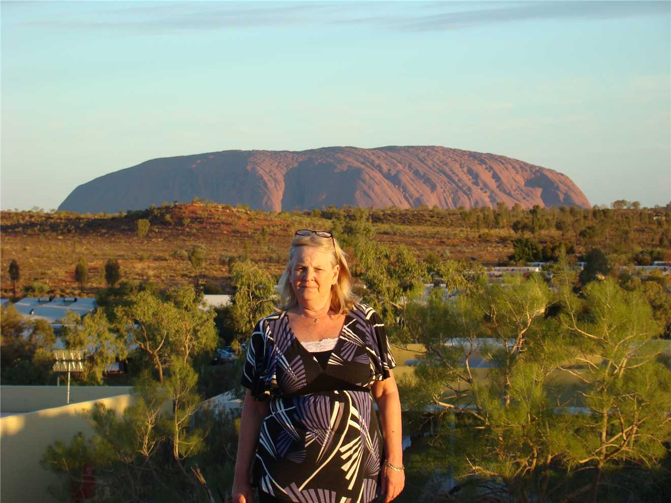 Well this morning, I awoke to the dark Norm, I got up about 6:30am in the dark, and climbed our near sand dune to take some photos of Ayres Rock, but as it was still dark, the glow of the lights from the buildings between me and Ayres Rock were too bright, so the photos were crap.