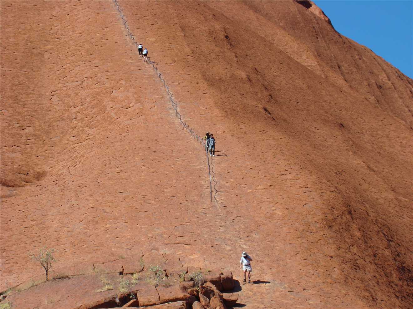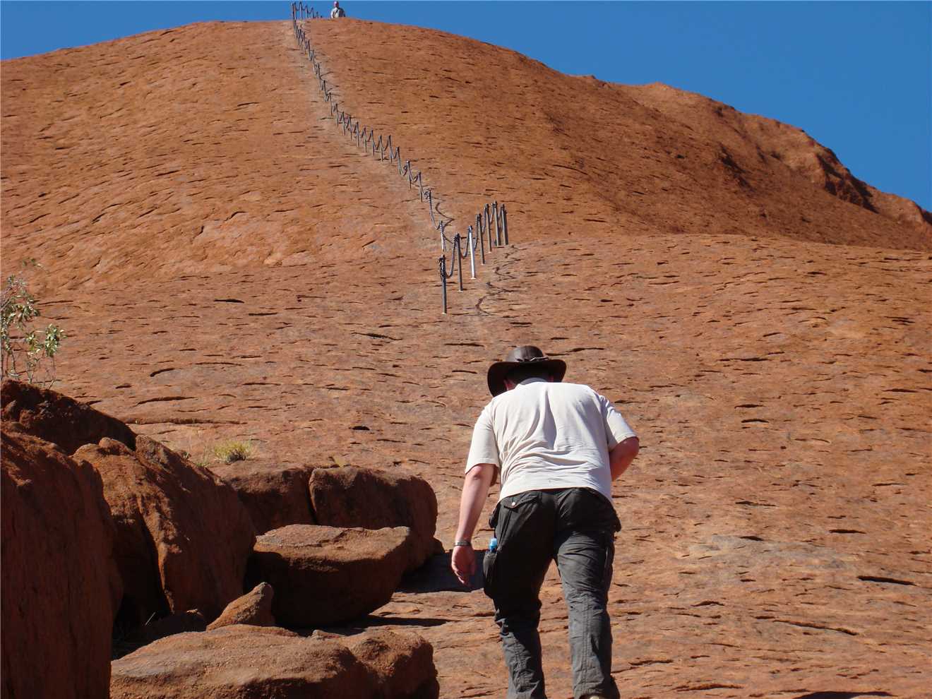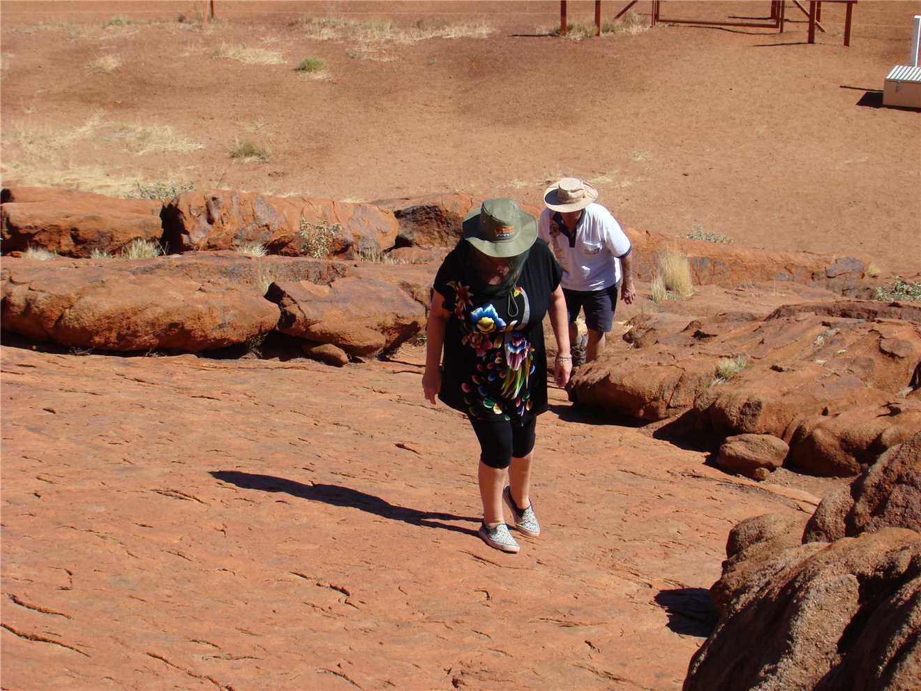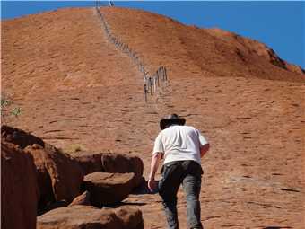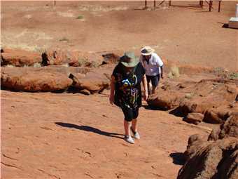Bear in mind, it is about 10:45am and probably 25%deg, so we started our climb, I took some photos of us on the climb, BUT, would you believe that my 3 camera batteries went flat and I do not have any photographic proof that we made it to the top. The mysteries of camera batteries, when we were about 50 feet from the bottom, my camera mysteriously starting working again, see photos. So we did climb the Rock. We have photographic proof of the start and the end, you will just have to trust us that we did do it. Would I lie to you.