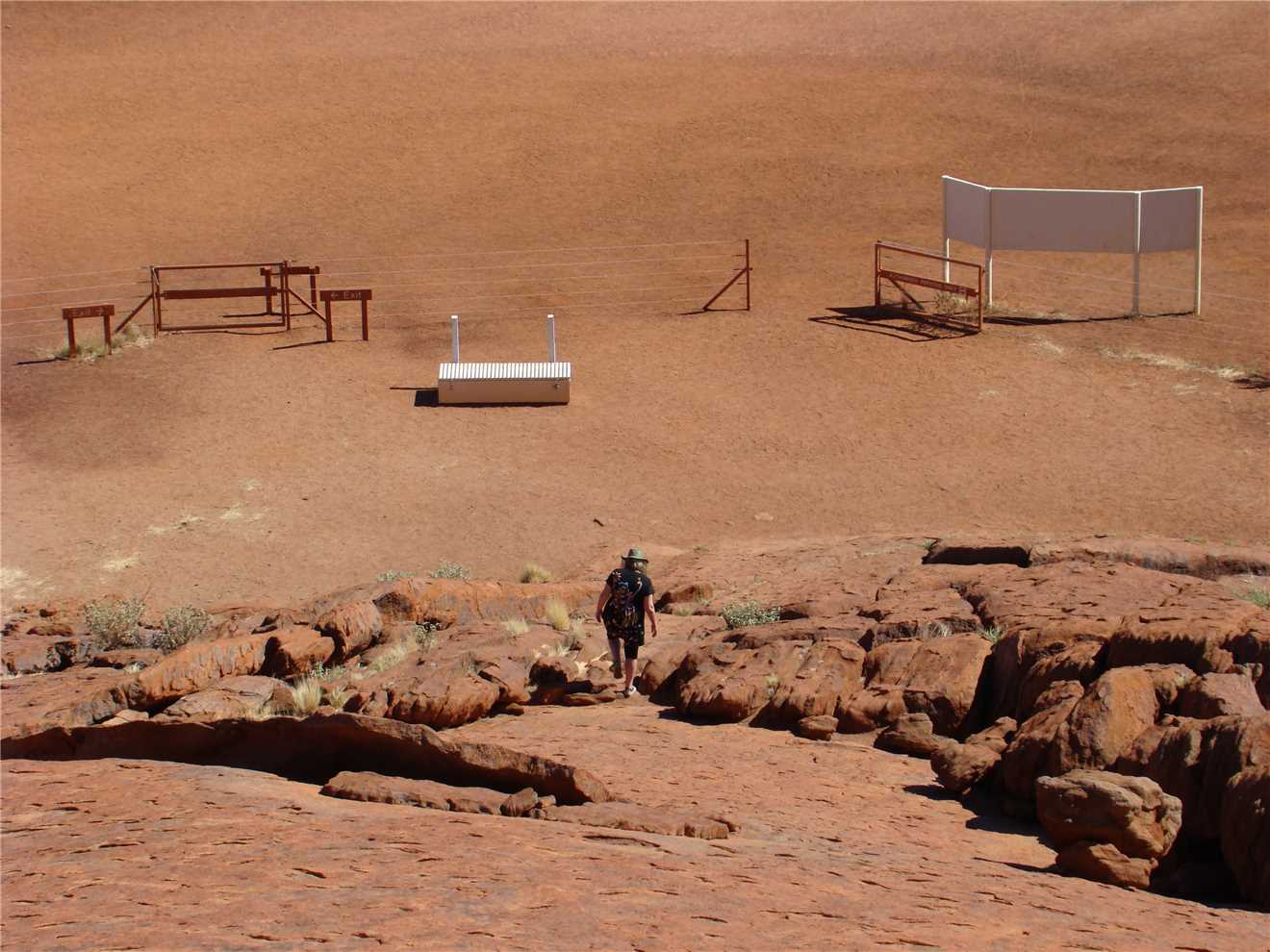 As soon as you turn left from Yulara drive, there is a bloody big rock in the distance about 20kms. We had to stop various times on the way to take photos from every possible vantage point. I think I achieved that. At the Rock, we went to the Cultural Centre and checked it out, very interesting and informative, we visited all the displays as such, the souvenir shop and the cafe. After our coffee and sandwich, we drove to the climb area. Parked the car, watched various people climbing the rock.
