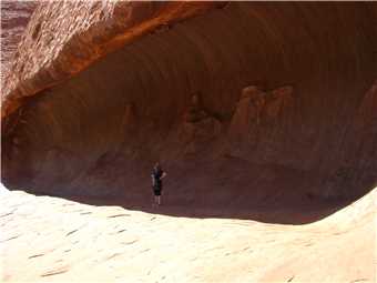 About 50m away from our camp, is a sand dune that we walked up to view the rock, there will be photos.