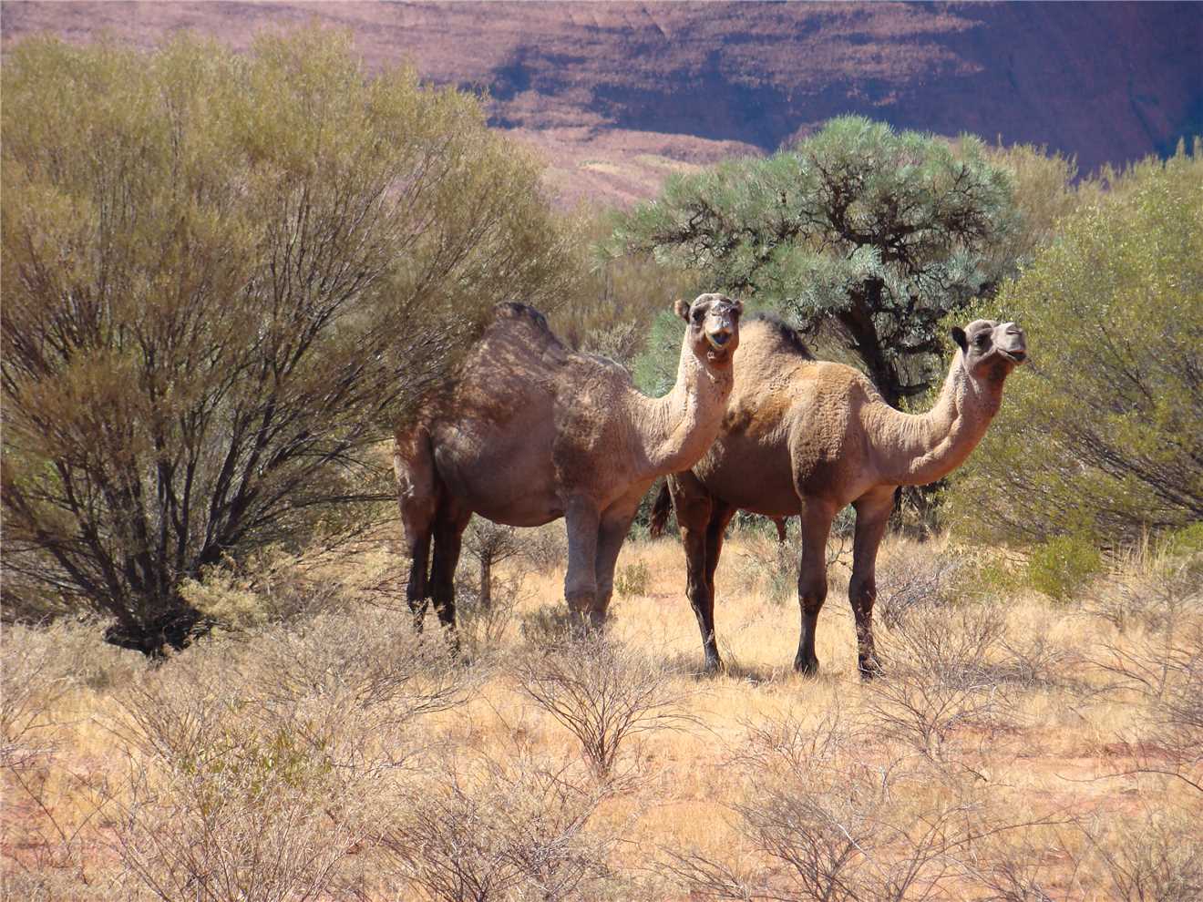There were 4 feral camels just grazing about 30m away, I stopped the mighty Navara in the middle of the road, Marg jumped out with the camera. I parked the car and joined her, there were now 7 camels. That brings our Feral camel count to 12. Eat your hearts out Hamish and Andy, who didn't see any feral camels on their Who Dares Darwins - Caravan of Courage last November.