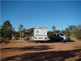 We arrived at Gemtree CP about 11:50am and setup camp. It is a nice out of the way place. There are about 15 vans here. The weather is about mid 20s, blue skies,