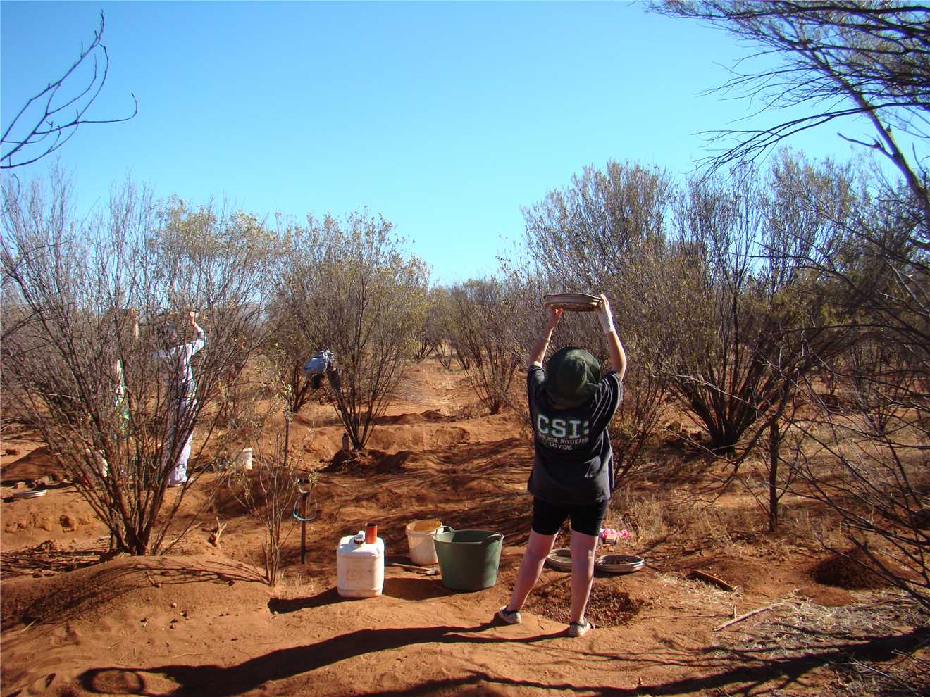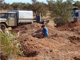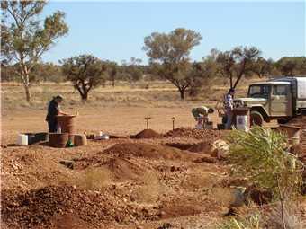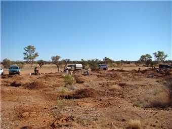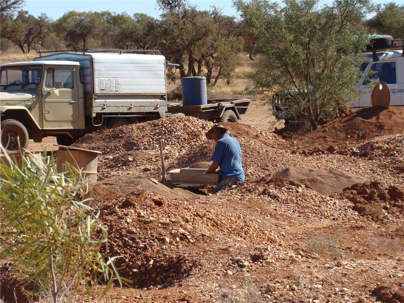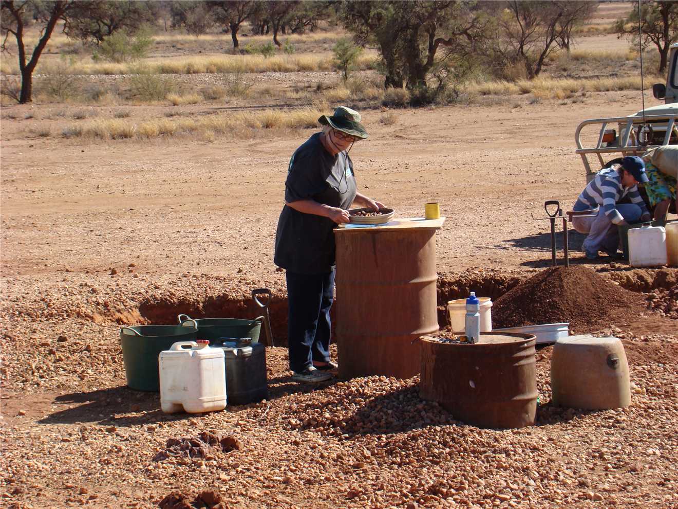 At 8:30am, Marg and I lined up at reception to be allocated our equipment for today's Garnet fossicking tour. We left about 8:30am and drove 20kms along the sealed section of the Plenty hwy, then a further 2kms on gravel, then turned right and went 500m inland to Gemtree's own lease claim.