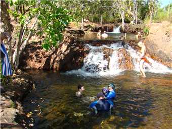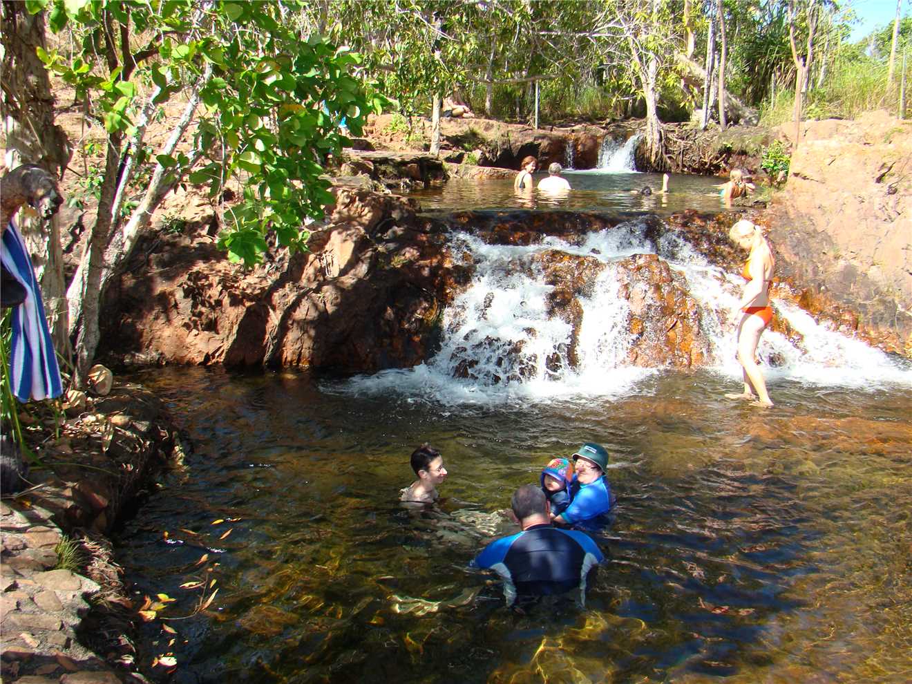 We left camp about 9:30am and headed to Litchfield National park, the first stop was the Magnetic Termite Mounds, the termites weren't magnetic and the mounds weren't magnetic, it was that this breed of termite actually builds their mounds facing North/South, so the sides face East/West to maximise the heat of the sun. Next stop was Buley Rockhole, this was brilliant, we swam in the various rockpools for about 90 minutes. There were heaps of people but it was still awesome. From here we drove to Florence Falls, but you had to walk about 1km and up and down steps to get there, we gave it a miss. We then drove to the Monsoon Cafe which was past the Wangi Falls about 65kms from Batchelor. We had toasted sandwiches for lunch and I had a double sars. Yumma.