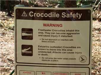 We left Jabiru about 9am and went to empty the shitter at the Jabiru Dump point. We stopped at the Kakadu National Park boundary and took photos, then as we crossed the Adelaide River, we spotted a croc in the river. At Humpty Doo, we stopped for some food supplies, I just happened to park out the front of the Bottle shop, so naturally, I bought a 30 can slab of VB. We arrived at Big4 Batchelor Resort Caravillage at 12:45pm, we setup camp and I tried to setup the Satellite TV, but to no avail, we do have some tree coverage, so I blame that, we can receive Channels 2, 7, 9 and SBS, but very snowy, but we can still hear it clearly.