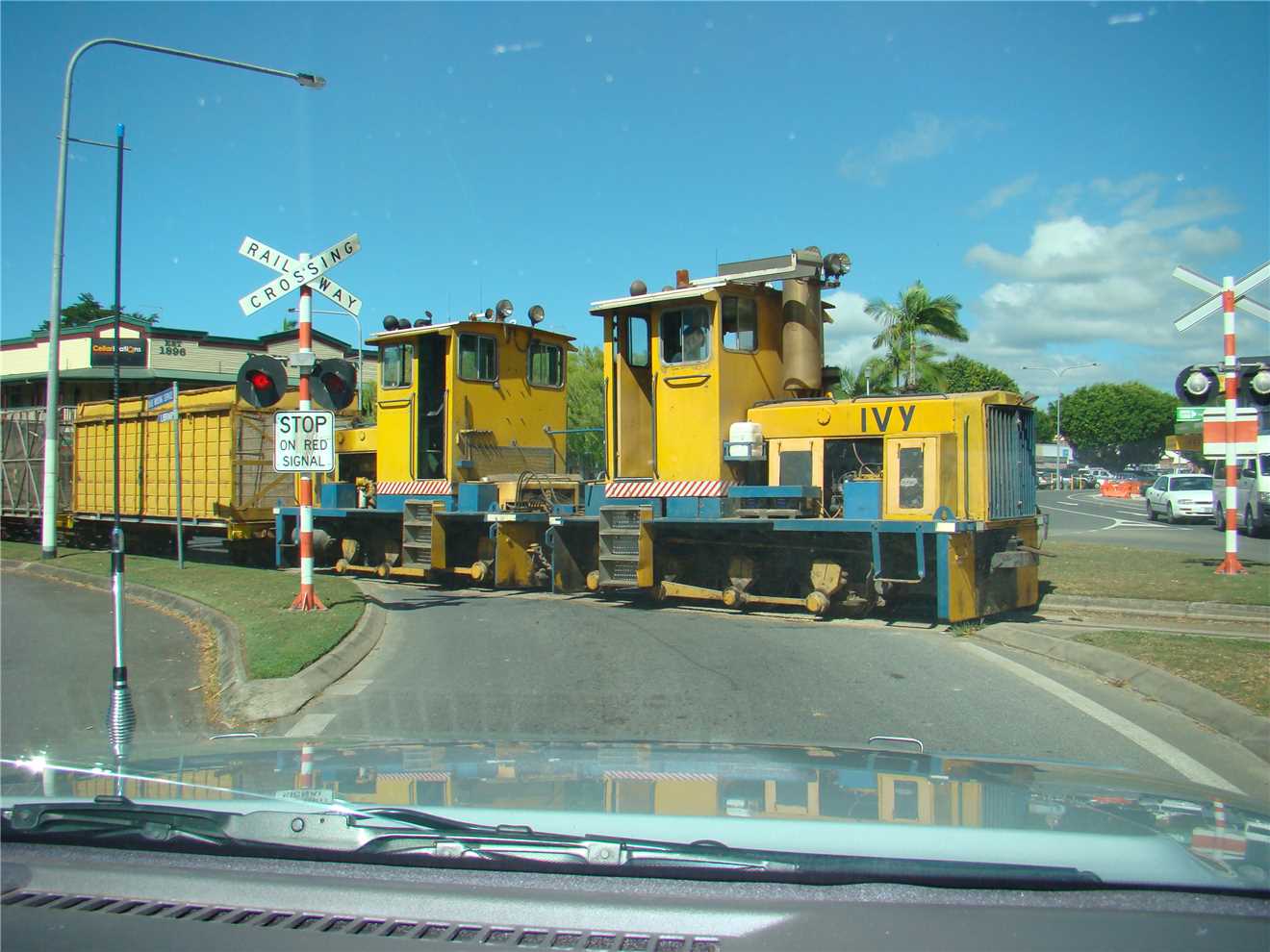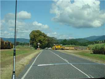 Waiting for the cane train crossing Mossman's main street.