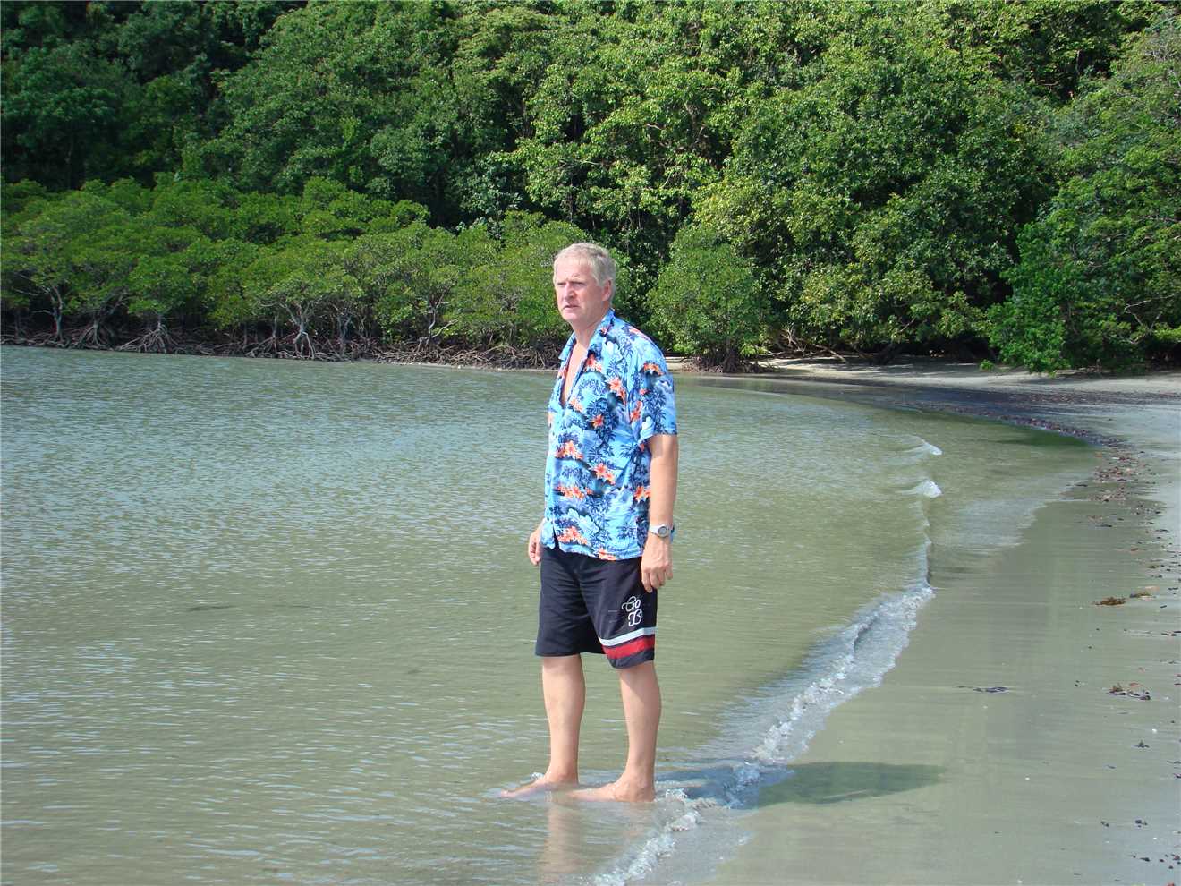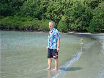 Me at Cape Trib beach - can't swim because of the Crocs.