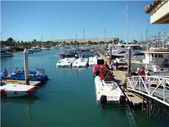 I left camp at 9am, it was a beautiful morning, no clouds, no breeze and blue skies. It was quite funny watching the Townsville cyclists wearing arm and leg warmers and me, just shorts and t shirt, they must feel the cold. I rode along the Strand and half way along, I came across the car show, there were approx 100 cars on display, so naturally, I stopped and took some photos. Next I went past the marina and the power boats were been lifted into the water, in readiness for their 11am race. Onwards, I rode through Townsville CBD, but being Sunday, there was hardly any traffic, which is good. Upto Boundary St and Charters Towers Rd, which is where the track is, there were no signs saying "No Entry", so naturally, I rode into the pit area and out the back, I even rode along the track out the back of the pit area, where the chicane is, I didn't push my luck riding too far along the track, as the workers are still setting up. I eventually left the track area and rode along the streets beside Ross River and got back to the Strand, it is now crawling with people. I visited the power boat pit area and all the boats were in the water about to go out onto the race area. I carefully rode along the shared path along the Strand looking for a good spot to watch the race, I picked a spot, which had the turning mark about 300 meters off shore. The race was great, the noise was just awesome. I rode along the road as there were just too many people on the shared path.