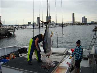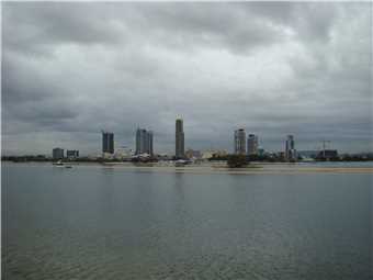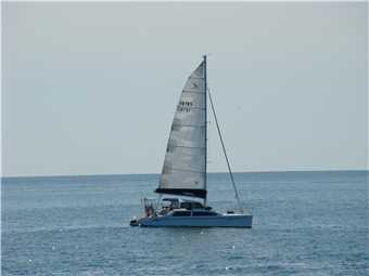 Hukuna Matata - A large Catamaran moored in the inlet.