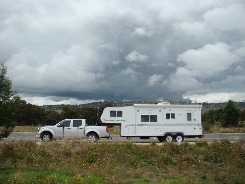 We left Kingston on-Murray about 8am and headed to Morgan via Waikerie. It was drizzling all the way, as we drove through Waikerie, a car towing a trailer was definitely travelling quicker than the 60kph, coming towards us, did a nice slide but caught it, thank God.