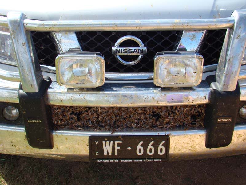 We also cleaned the millions of locusts of the front of the car. You should have heard what the truckies thought about the locust plagues. They weren't happy to say the least. We filled up with diesel in Renmark.