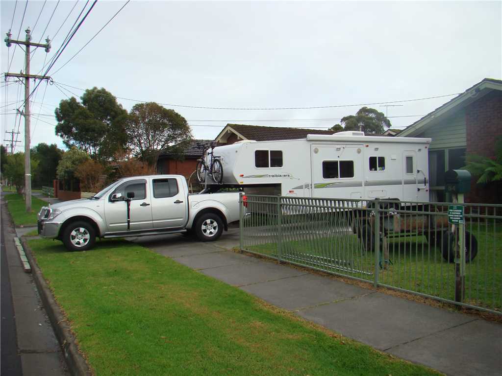 Our fiver usually lives on our front lawn, see photo below. We have also added a new Telecommunications Hub for this trip, well actually, our last trip but seeming that it only lasted 2.25 days due Dad's accident, this is its debut trip.