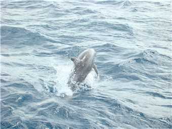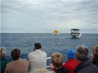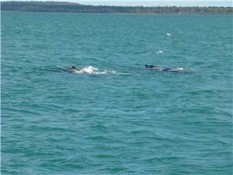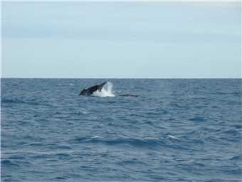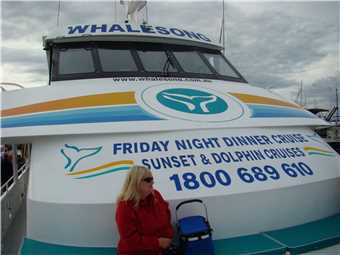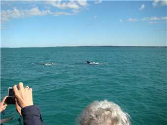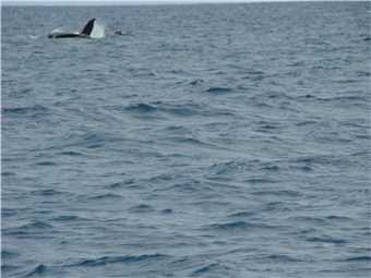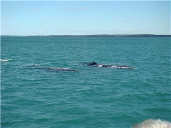 After lunch we continued back towards port, but our skipper wanted to show us a different breed of dolphin, which usually are about 2 kms from port, on our way there, we came across another 2 whales in relatively shallow water (4.2m deep), we turned off the engines and drifted with the whales, they were inquisitive, I took a video of them. Finally, we arrived back at dock about 2:30pm. It was a top day and we are both suffering from wind burn. Marg didn't get seasick, no one did.