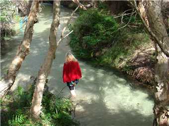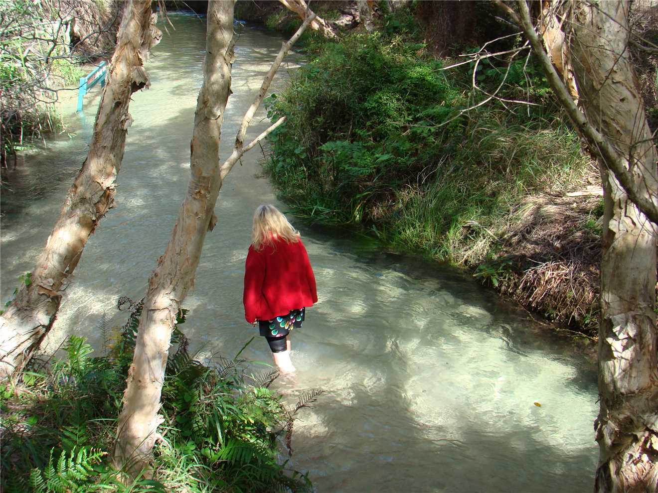 Marg walking along Eli Creek. How clear is it?
