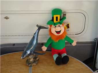 After getting myself organised, I headed off to Bunnings for a 5m chain and padlocks to secure my mountain bike to the van. Mid morning, I decided to go for a ride down to the marina and back along the bikepath that hugs the foreshore. It was a beautiful 13.7km ride, riding is a great way to see the area because you can ride into places that you normally can't visit. eg marinas. I visited the Urangan Pier it is 868 meters long. While I was riding, Marg was relaxing at camp. The only other thing that we did was, during the afternoon, we walked down to our local shops about 200m from camp and it just happen to have a souvenir shop amongst the shops, so we bought a few things, such as, Humphrey the Hump Back Whale to keep Paddy company. That's right you haven't seen or heard about Paddy. Marg bought Paddy in Inverell in Celtic country, Paddy is a leprechaun. We also bought a set of Georges (Pelicans), but they are securely wrapped in bubble wrap.