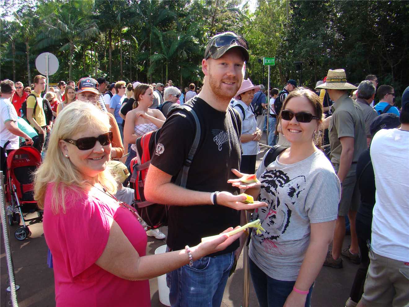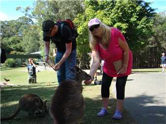 We arrived at Australia Zoo about 10:10 and proceeded straight to the Elephant feeding area, as Marg, Luke and Jodi wanted to feed them, I took photos. After that it was over to the Crocoseum to watch the Australia Zoo Wildlife Warriors, it consisted of snakes, birds and crocs. Brilliant as usual. From there, over to Roo Heaven to feed the roos, this is when we started to notice the lizards and dragons that roam the zoo grounds. We purchased 2 bags of roo food and the usual threesome started feeding the roos, guess what, I took photos. After feeding the roos, we still had some roo food left, so Marg gave it to the school kids there, they thought it was Xmas. Their minders hadn't bought them any roo food. Continuing on our zoo journey, we stopped at the Jabiru, Brolgas and Emus on our way to the elephants. We sat in the shade near the elephants and had our lunch, which consisted of bread rolls with various fillings made by Marg and coke. The elephant aroma was a tad overpowering.