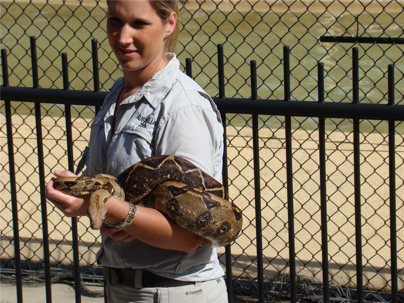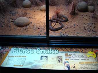 Next was a visit to the Tigers, they were just chillin' out with 3 handlers in their enclosure, I don't think that the Tigers ate them, as we left before they did. Walking back via the Elephants and a souvenir shop, we exited the souvenir shop with a stuffed elephant and also at the tiger's souvenir shop, we also bought a tiger in Khakis called Steve. Continuing on our epic journey, we walked through the koala's area and the Red Roo area, I think that the Red Roos were replaced by ordinary roos. On our way to the snakes, we walked through the rainforest avairy, then past the wombat enclosure, then we hit the snakes. My favourite snake of all time is the Inland Taipan aka The FIERCE Snake - the world's most potent little sucker, it can drop a 100 full grown men. That is one mean mother.