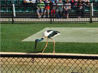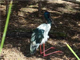 A Jabiru flies in.