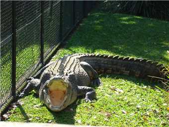 After leaving the snakes, we came across Becky Jo who just happened to be walking past with a beautiful macaw on her arm, more photos. We now had to check out all the crocodile pens, which we did. By the way, did I tell you that there are lizards and water dragons, running free everywhere. If I didn't, well they are.