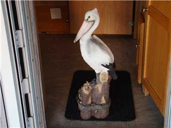 Picked Marg up and we went to Harbourtown for a push again in the "Black Chariot". We had lunch there and then went to Tivity which is a gift shop and when we left the shop we had a new 2 foot tall George. This caused a slight problem, because Marg had to carry George and consequently, we couldn't visit the other shops because Marg couldn't see over George, so we went back to camp and will revisit Harbourtown when she can walk the distance.