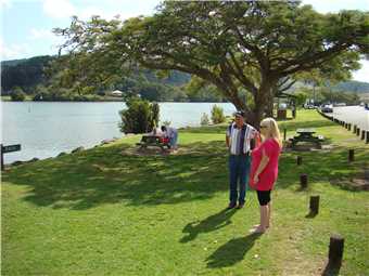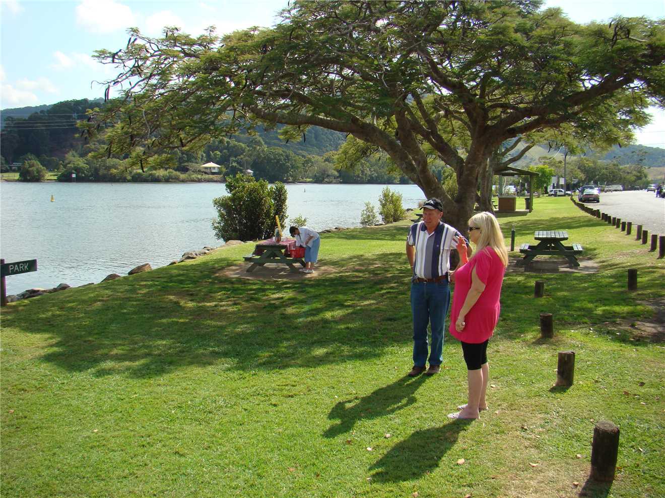 we took Lukey's car as it is more comfortable for four people than the mighty Navara. We left Keith and Lucy's about 9:45am and headed off, down the motorway through Coolangatta onto Tumbulgum which is an old historic town on the banks of the Tweed river, we stopped there for morning tea, which Lucy bought. It was yumma. We also met another couple Ray and Valda, friends of Keith and Lucy. We then drove over to Uki to the Mount Warning Hotel and had a very nice counter lunch. After lunch, we drove the 75kms back to Keith and Lucy's for a coffee, then we dropped Luke's car back home and drove the mighty Navara back to camp.